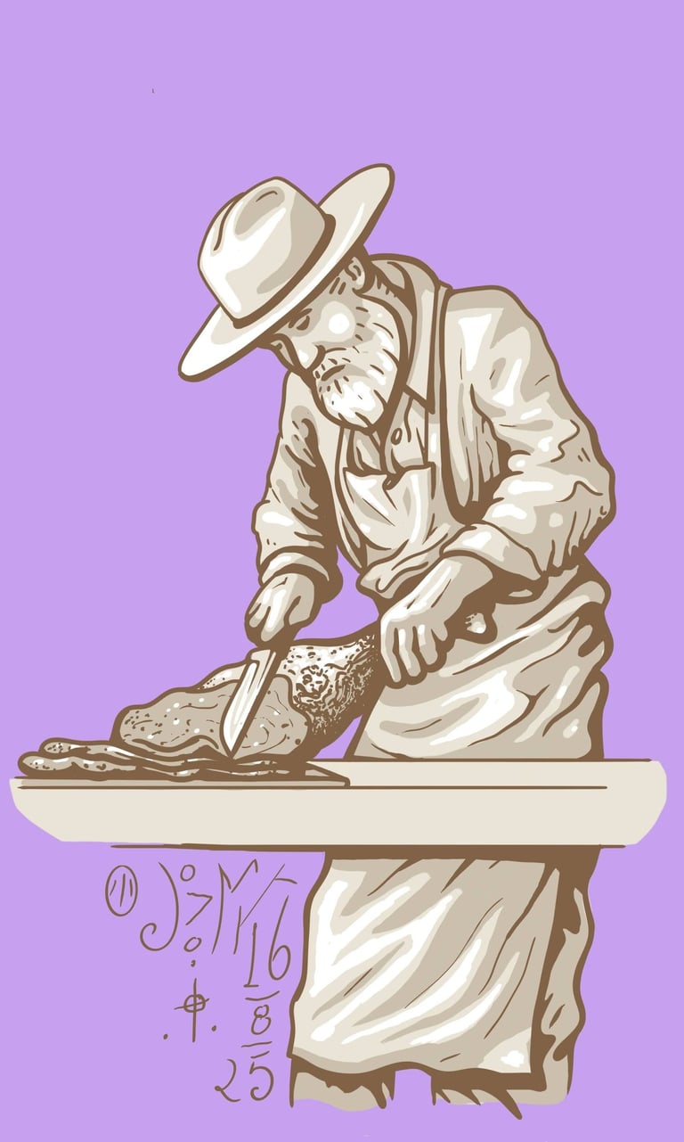 O coração desse sistema é a mandioca, e a força para transformar raiz, grão e semente em refinado pó vem do boi, como a poeira do estradão. Não podemos esquecer os quatro milhões de seres humanos escravizados no Brasil para cultivar cana, café, mandioca, milho, arroz, feijão e fumo. Homens, mulheres e crianças, forçados a lidar com gado e mulas, desligados de seus nomes e sabores.