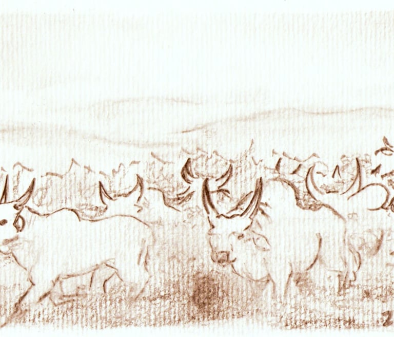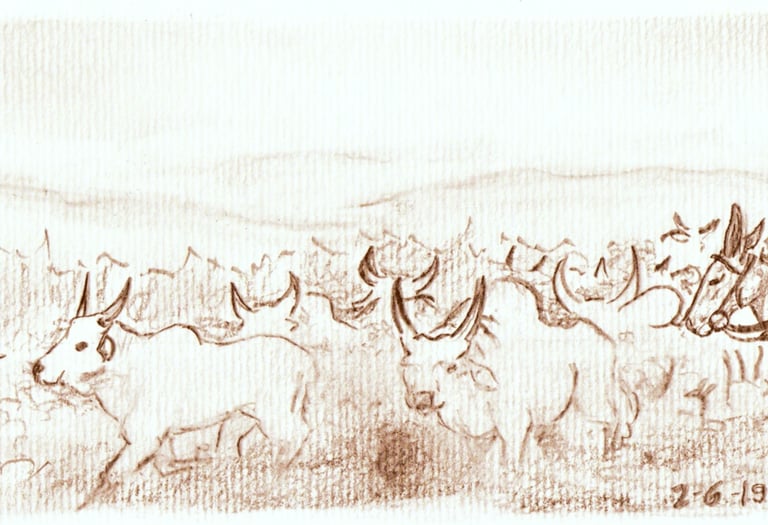 Entre o Nelore e a Tilápia, cabe exaltar o boi, que chegou amarrado e menosprezado, incorporado aos engenhos como motor de trabalho. Moendo cana, triturando milho, trigo e mandioca, girando secadores de café, foi companheiro na solidão e força no trabalho até o século XIX, quando as linhas férreas transformaram músculos em carne. Só lhe restou a força para o trabalho e o companheirismo silencioso.